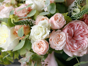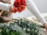 Start with greenery to give your arrangement structure and shape. Think eucalyptus, ferns or even herbs. Then layer in your main blooms. Don’t be afraid to play with height and asymmetry - place taller stems toward the centre and let smaller ones drape naturally around the edges. The result should feel effortless and organic, not overly styled.