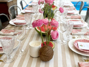 “Add texture and colour with printed linens and layered placemats, chargers and plates. Stick to two colours, like pink and green – using a mix of different shades of these colours in different prints – and add in neutral textures like woven rattan placemats or bamboo cutlery to create a cohesive table setting.